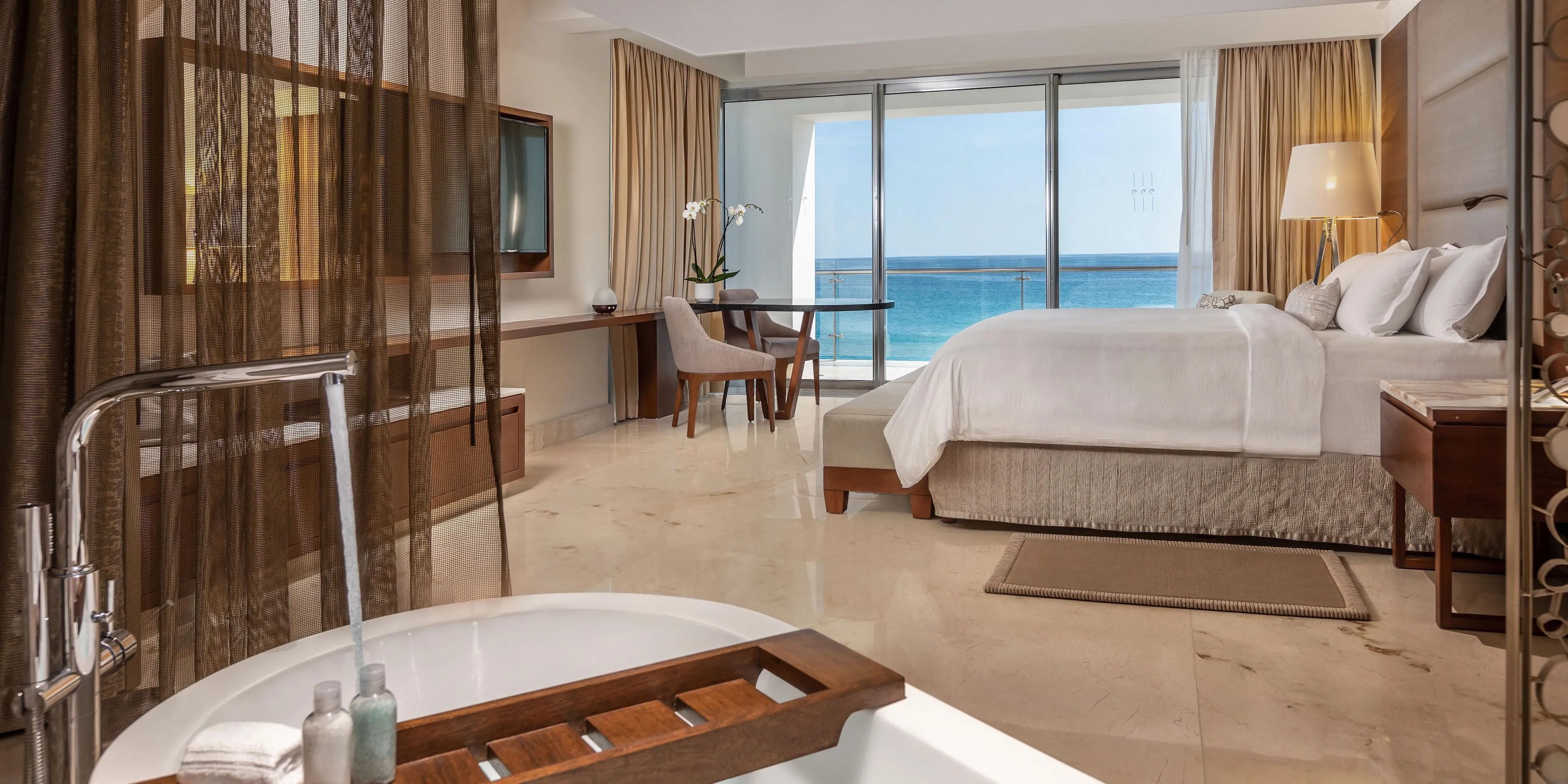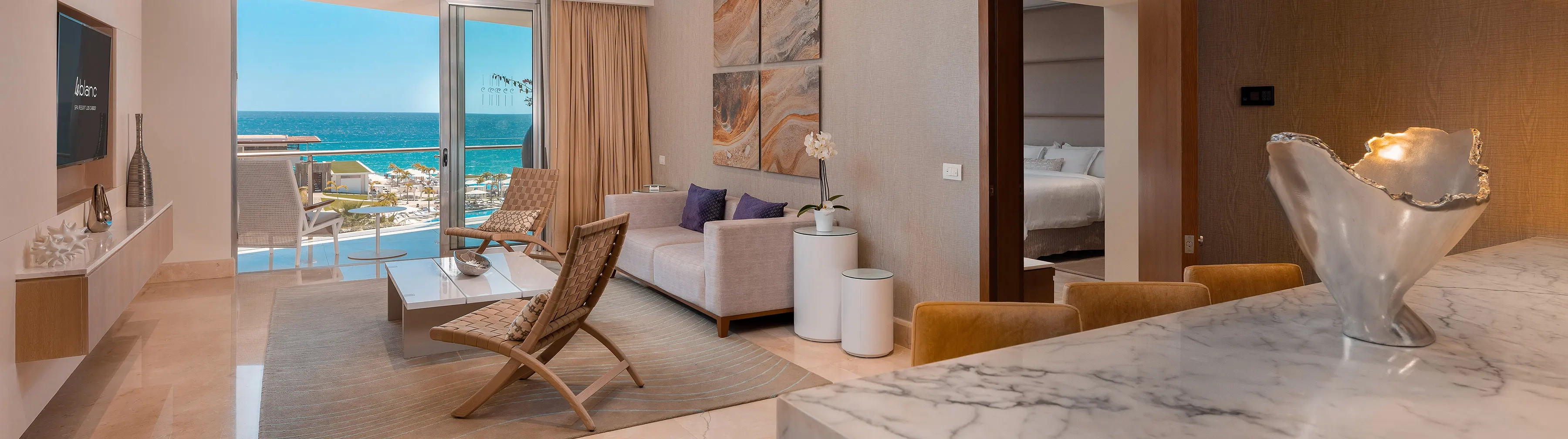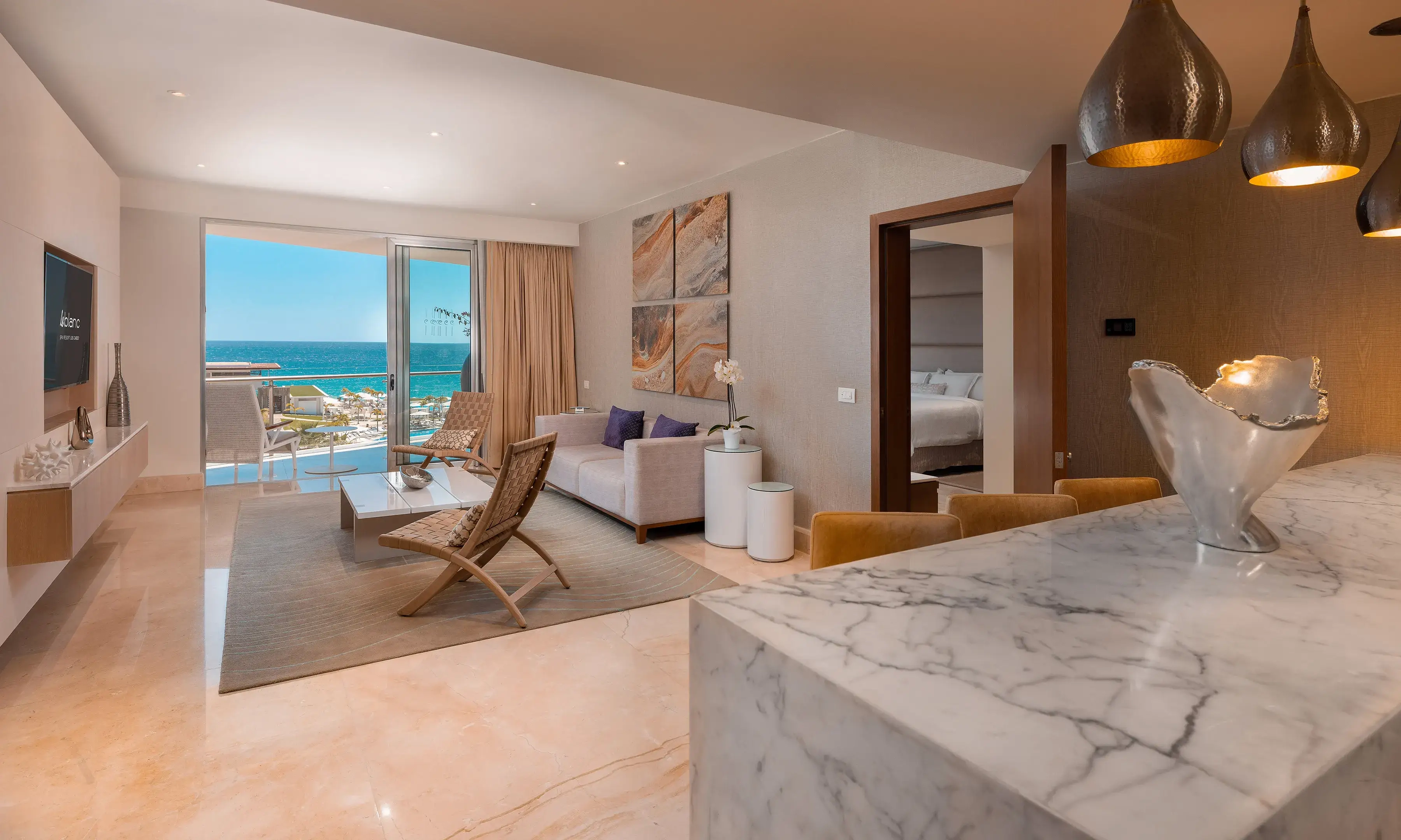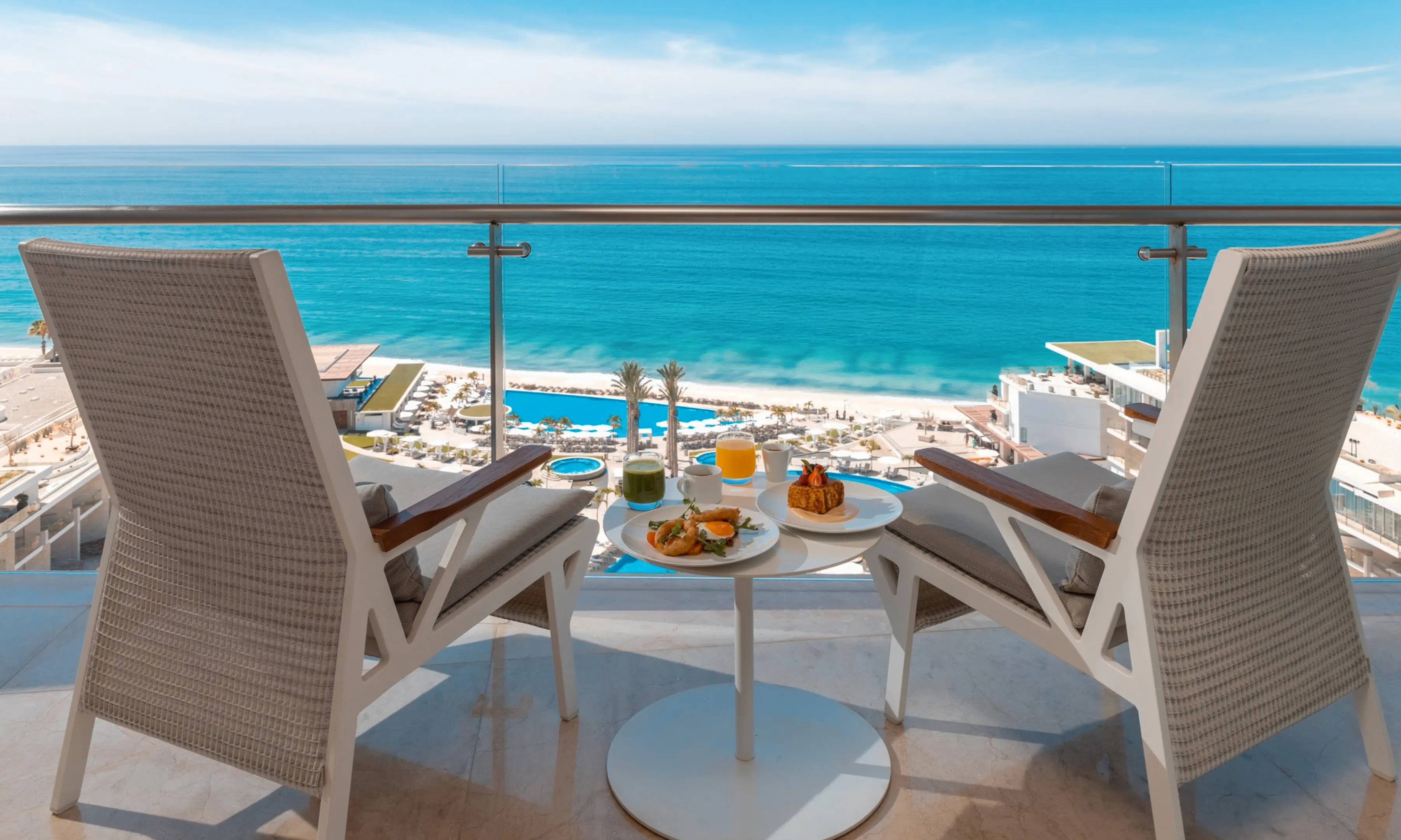 Step into crowning luxury with bountiful spaces to relax and embrace the spirit of Los Cabos. Savor enchanting views from your spectacular double-sized balcony and sip luxuriously with premium liquor selections coupled with the most exquisite amenities.